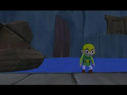 拿完(或放弃)硬币后,直接穿过出口的走廊。一段短暂的过场动画会显示巡逻的Moblin和一个巨大门。